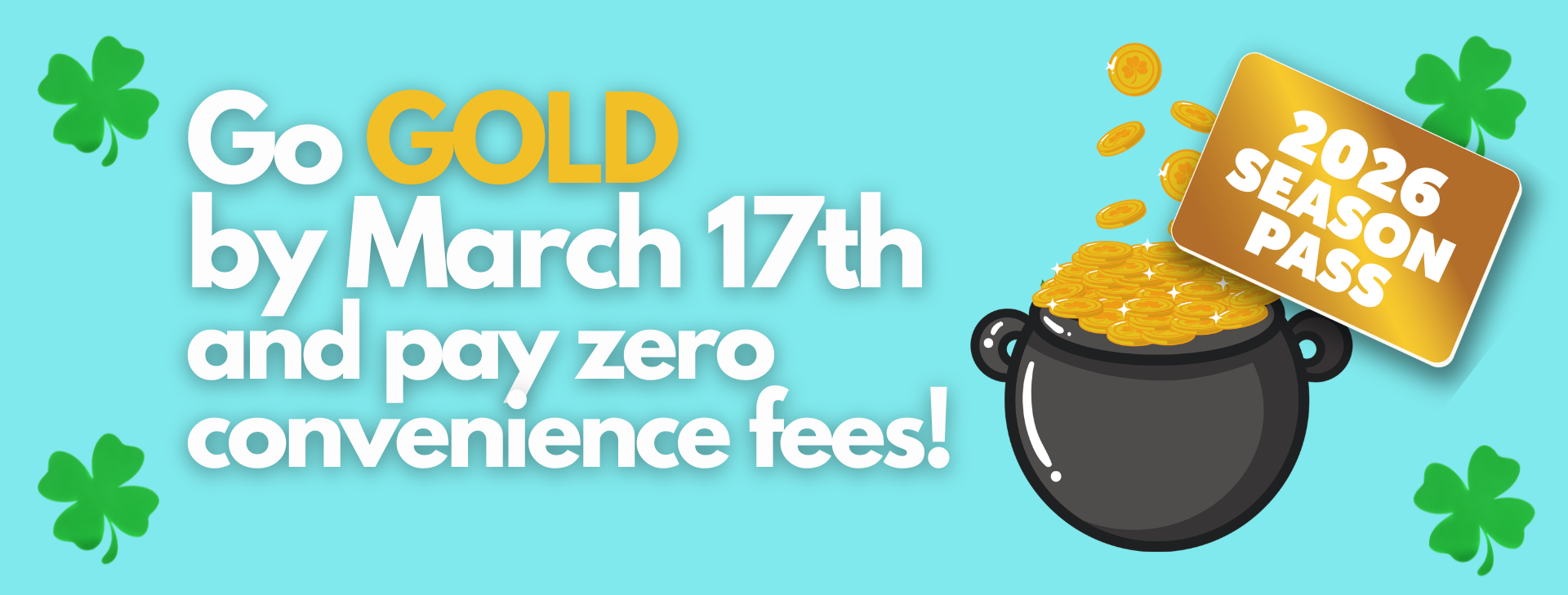 Act by March 17th and you can spread the cost of your entire purchase over 5 low online payments! Get Silver Season Passes for as low as $16.60 a month or Go GOLD for as low as $20 a month.