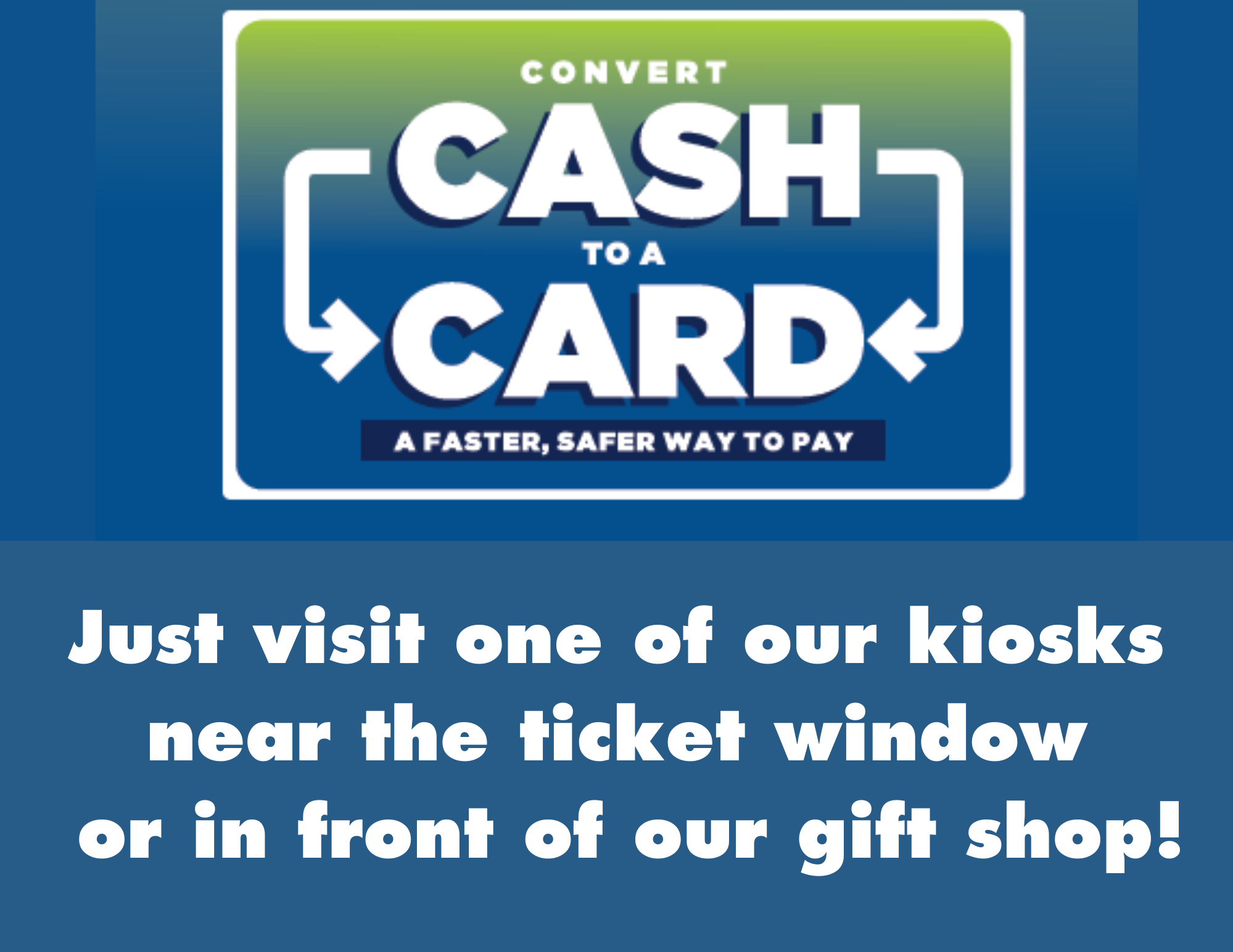 With our Cash-to-Card system, we can conduct contactless transactions, and it’s faster, safer, and always secure. All ticket booths, in-park restaurants, retail locations, locker kiosks, and bars now require the use of a card or mobile wallet, such as Apple Pay, Google Pay, Visa, MasterCard, Discover, American Express, etc.